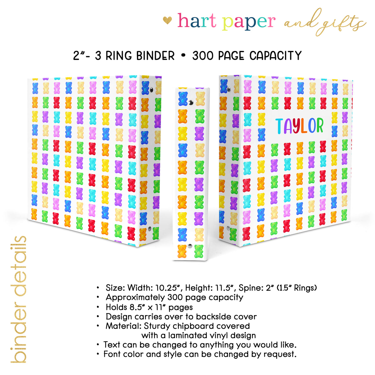 Rainbow Gummy Bear Personalized Custom 2" 3 Ring Binder • School Office Supplies