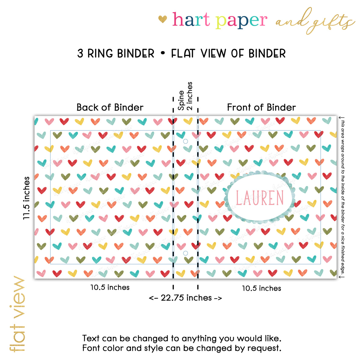 Rainbow Hearts Personalized Custom 2" 3 Ring Binder • School Office Supplies