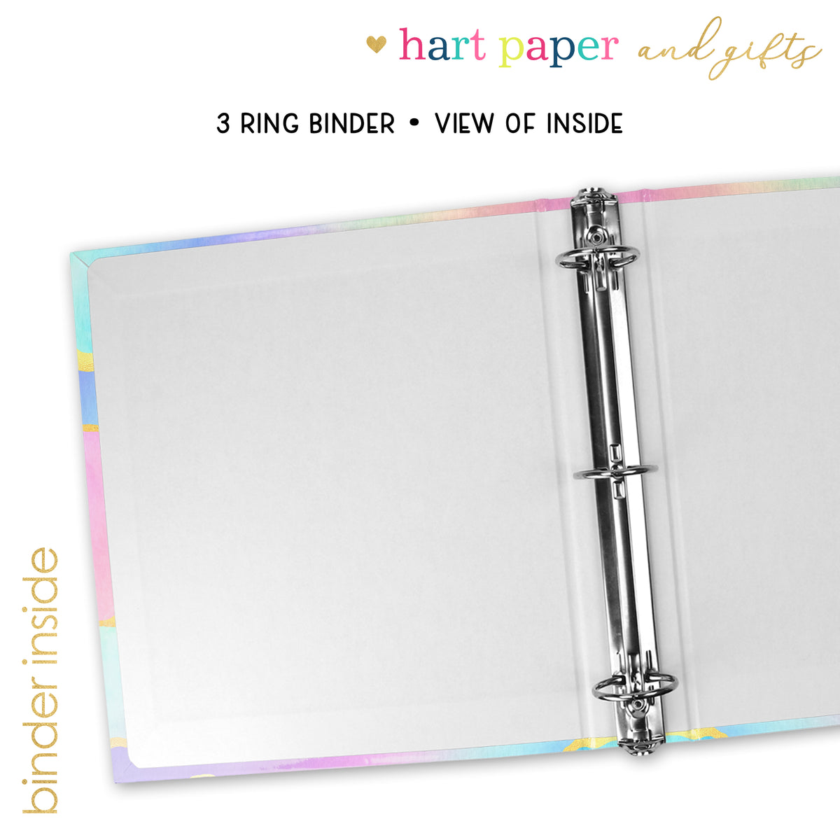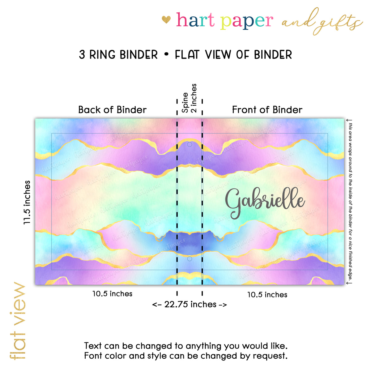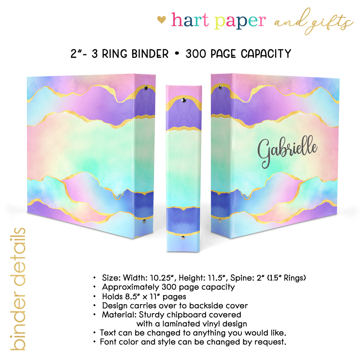 Rainbow Ink Marble Personalized Custom 2" 3 Ring Binder • School Office Supplies