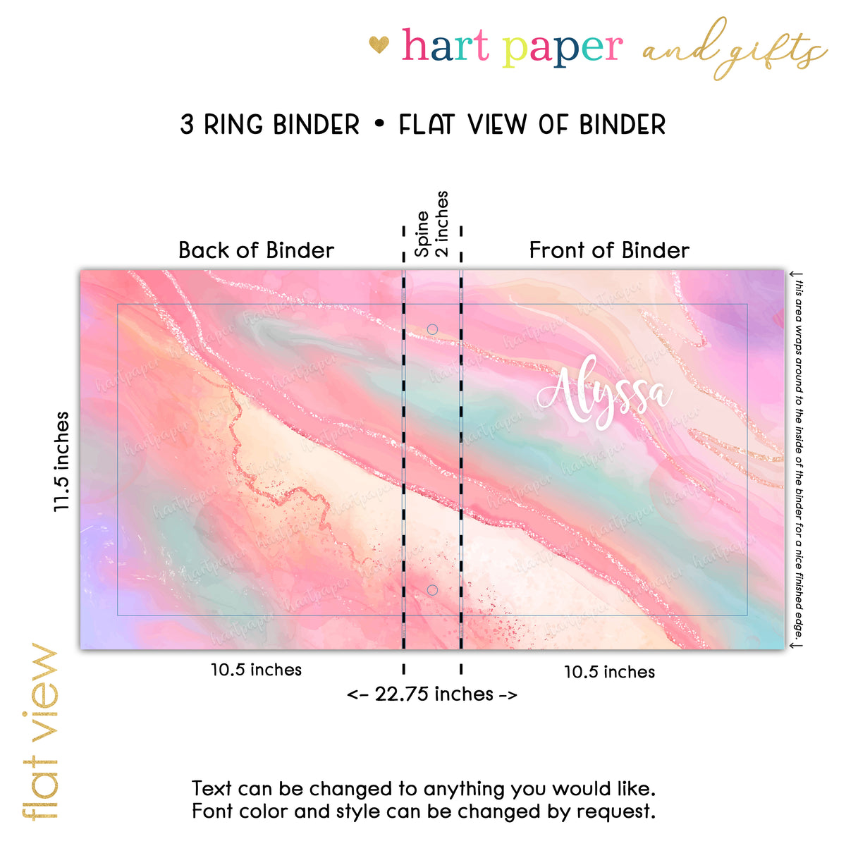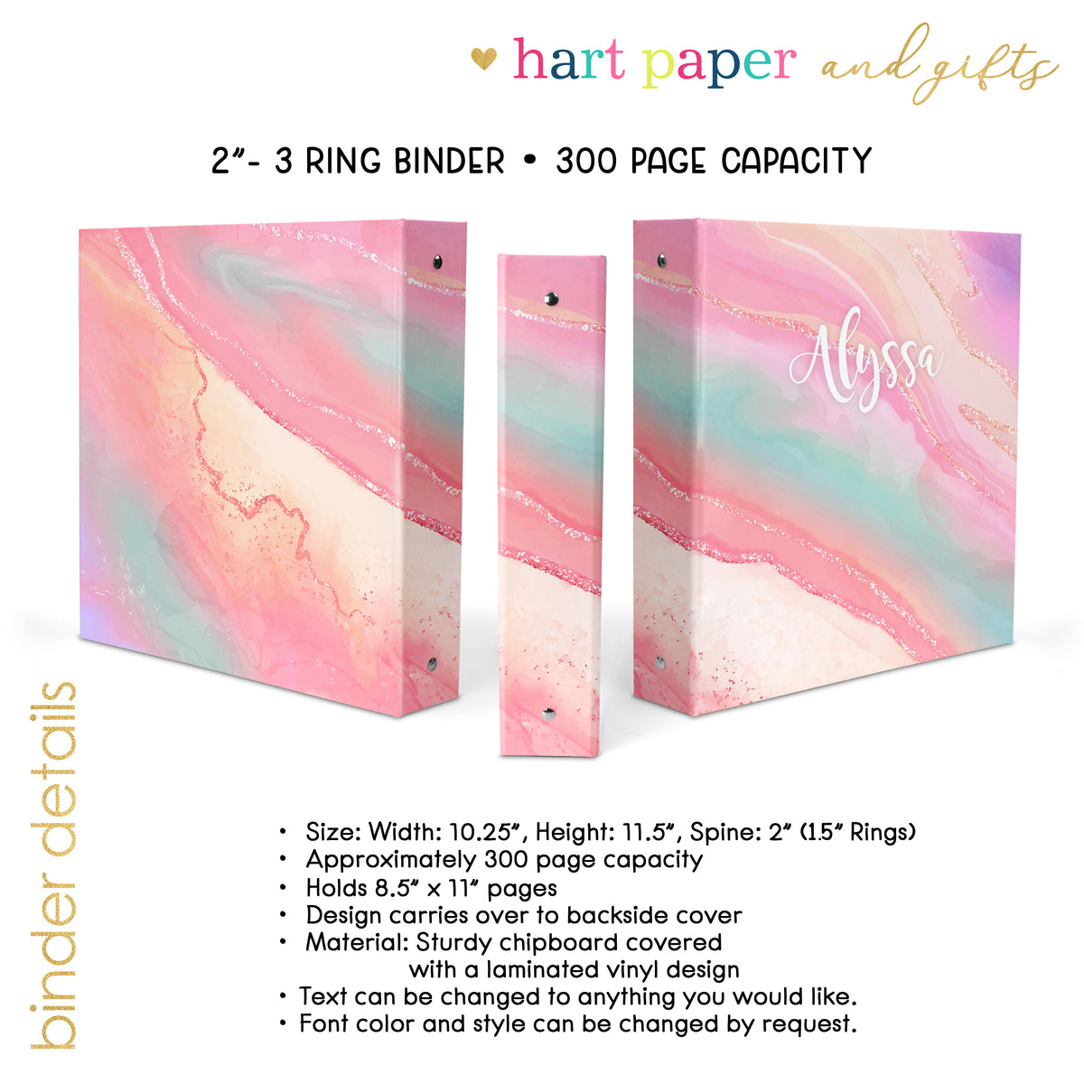 Rainbow Ink Marble Personalized Custom 2" 3 Ring Binder • School Office Supplies