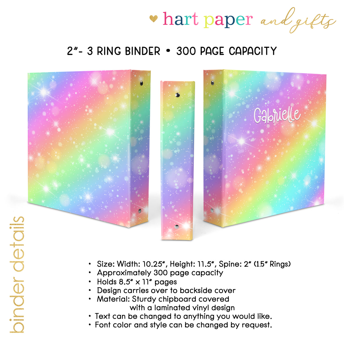 Rainbow Personalized Custom 2" 3 Ring Binder • School Office Supplies