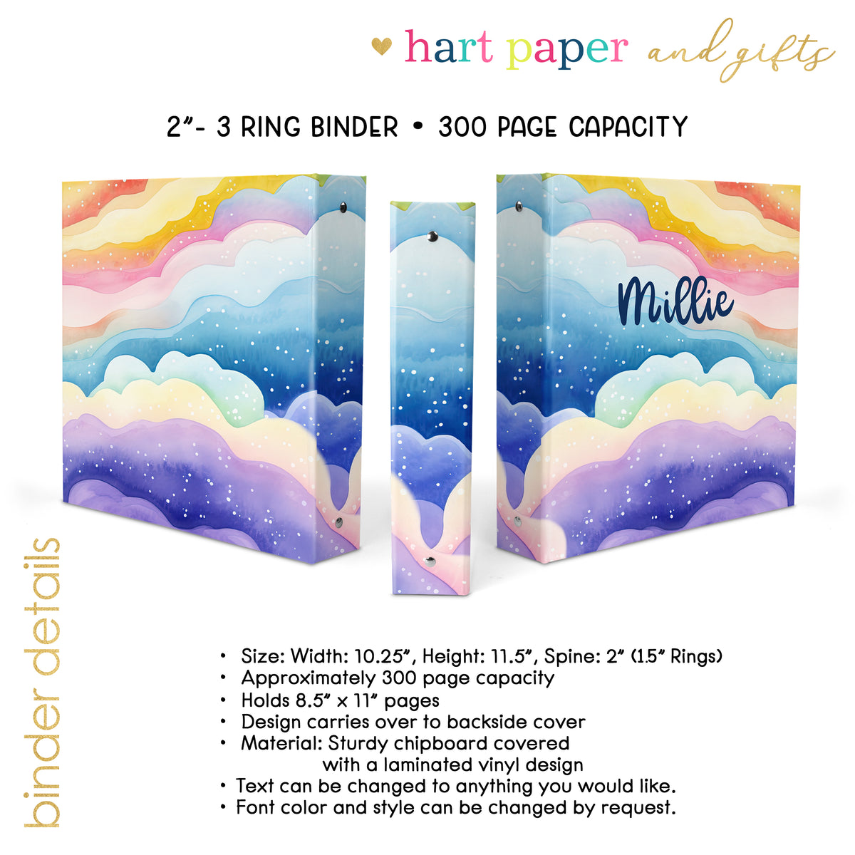 Rainbow Personalized Custom 2" 3 Ring Binder • School Office Supplies