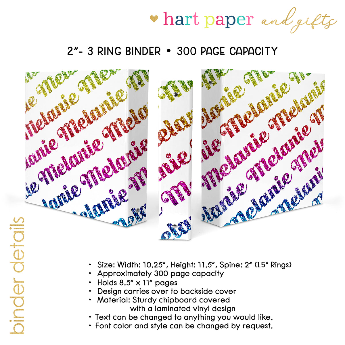 Rainbow Repeat Name Personalized Custom 2" 3 Ring Binder • School Office Supplies