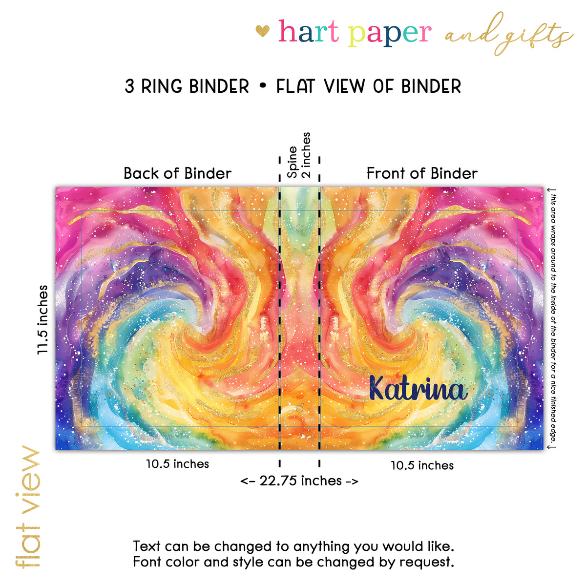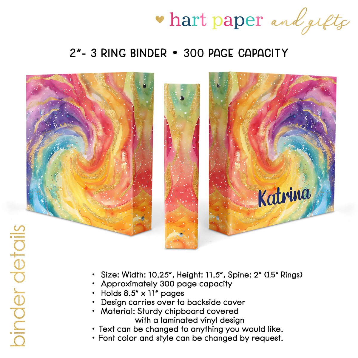Rainbow Tie Dye Personalized Custom 2" 3 Ring Binder • School Office Supplies
