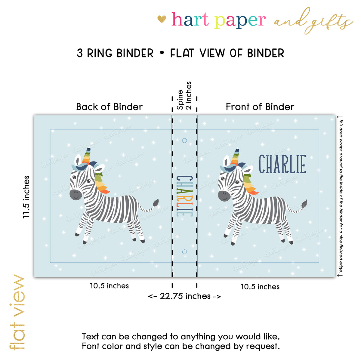 Rainbow Zebra Health Personalized Custom 2" 3 Ring Binder • School Office Supplies