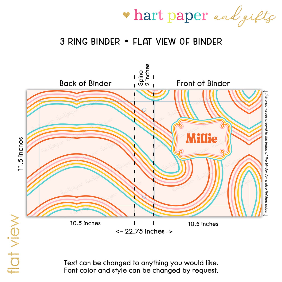 Retro Rainbow Personalized Custom 2" 3 Ring Binder • School Office Supplies