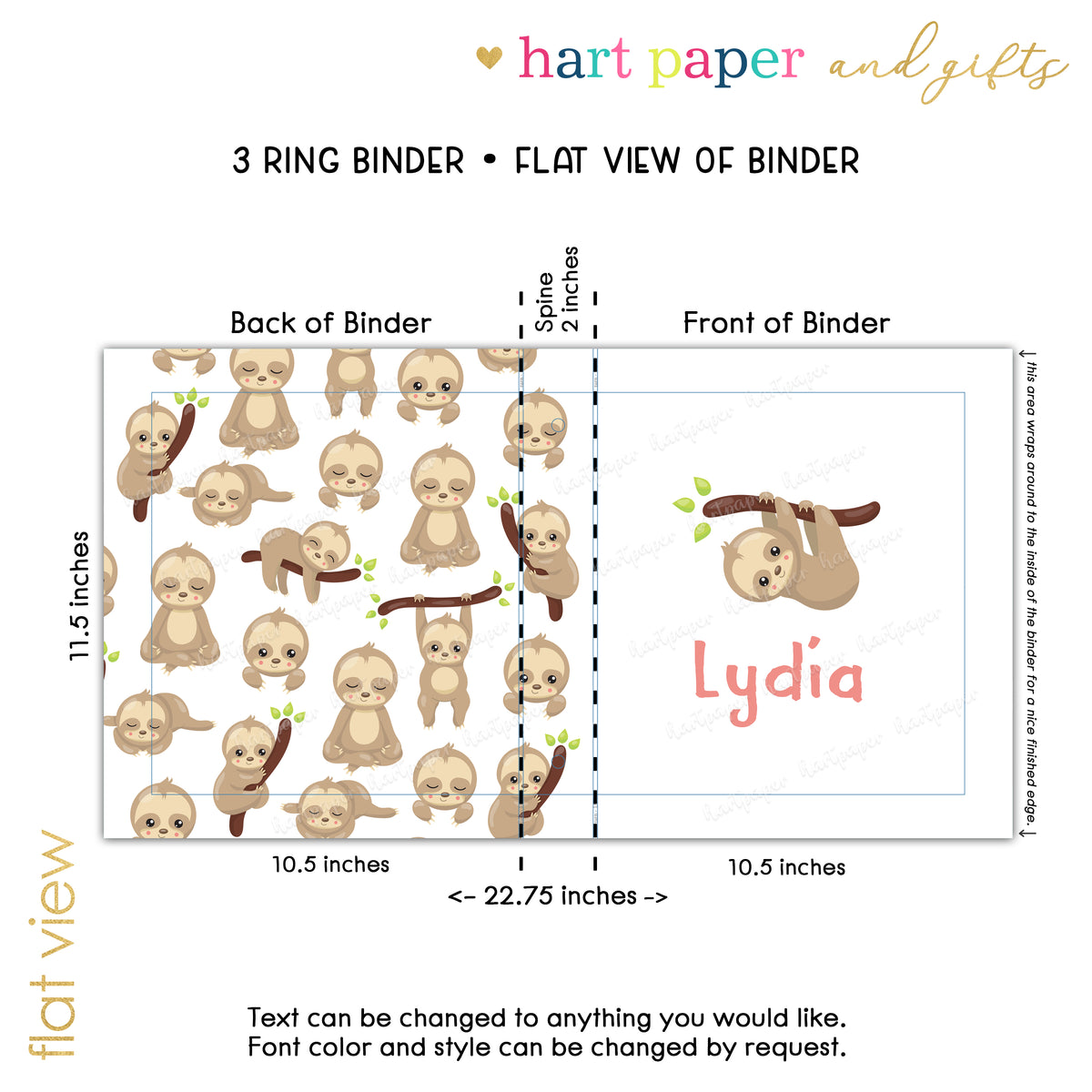Sloth Animal Personalized Custom 2" 3 Ring Binder • School Office Supplies