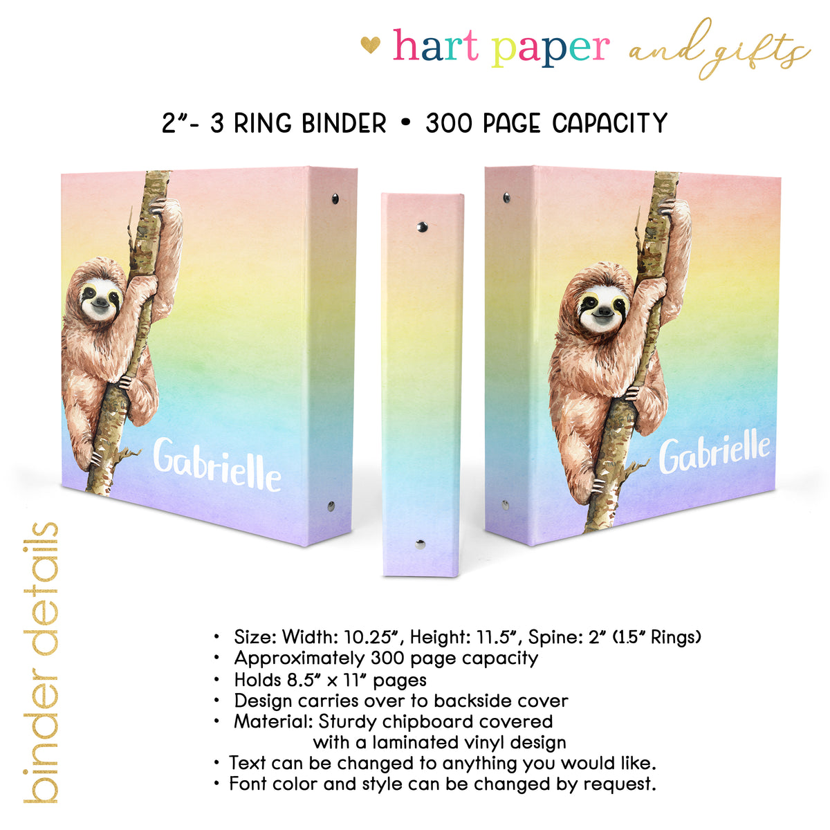 Sloth Animal Personalized Custom 2" 3 Ring Binder • School Office Supplies