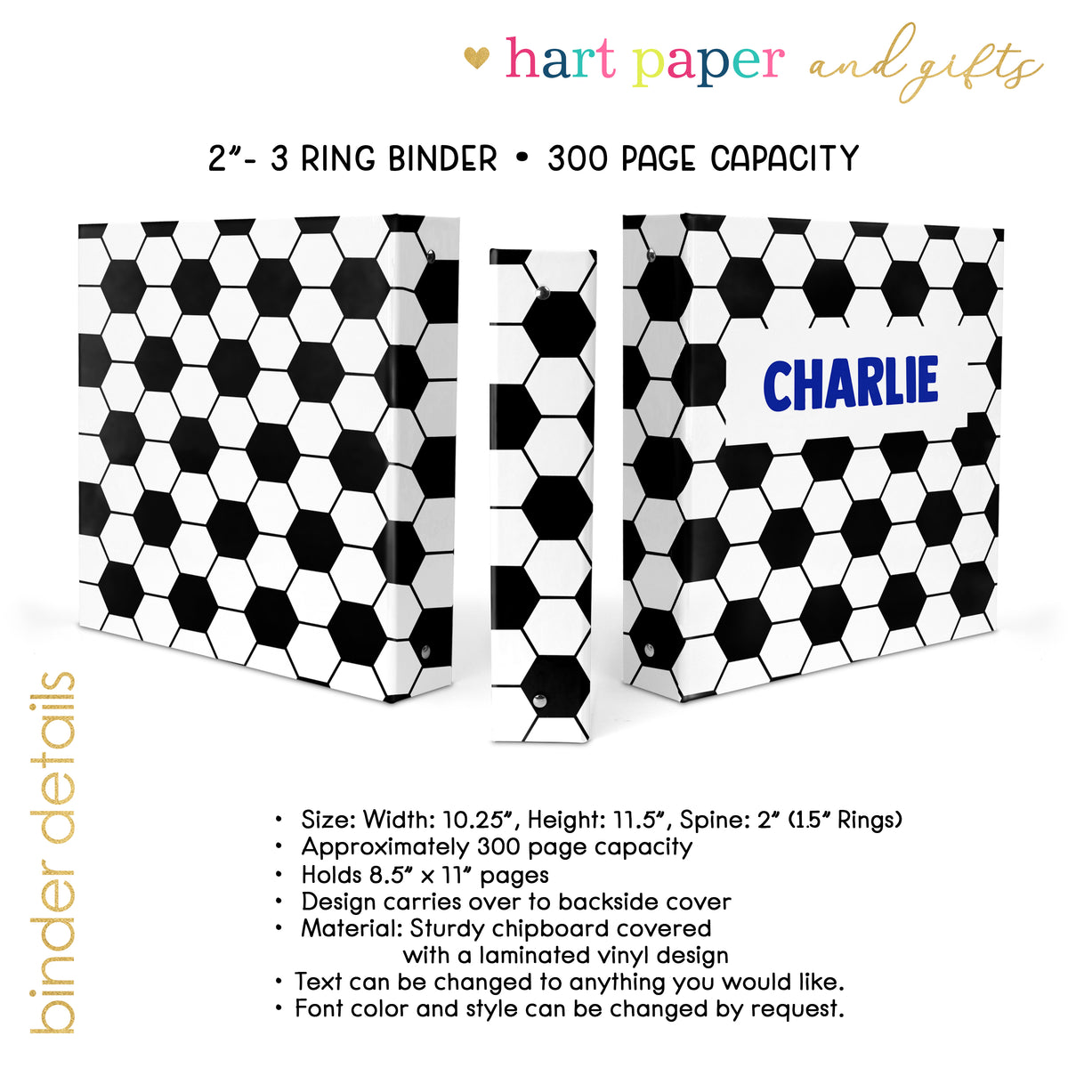 Soccer Sports Personalized Custom 2" 3 Ring Binder • School Office Supplies