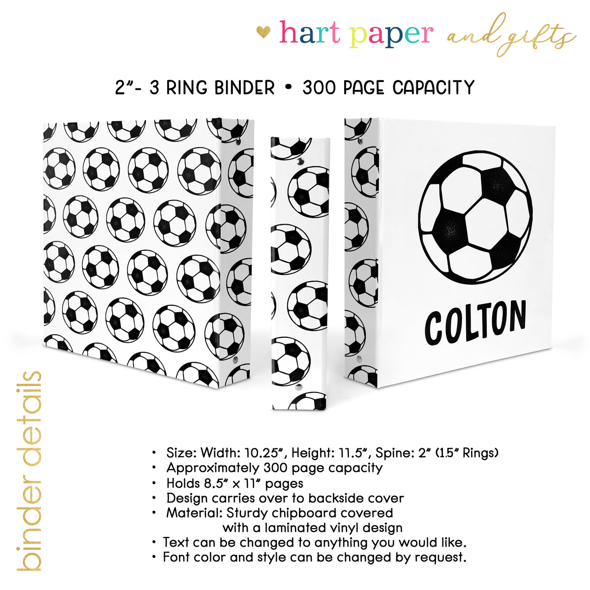 Soccer Sports Personalized Custom 2" 3 Ring Binder • School Office Supplies
