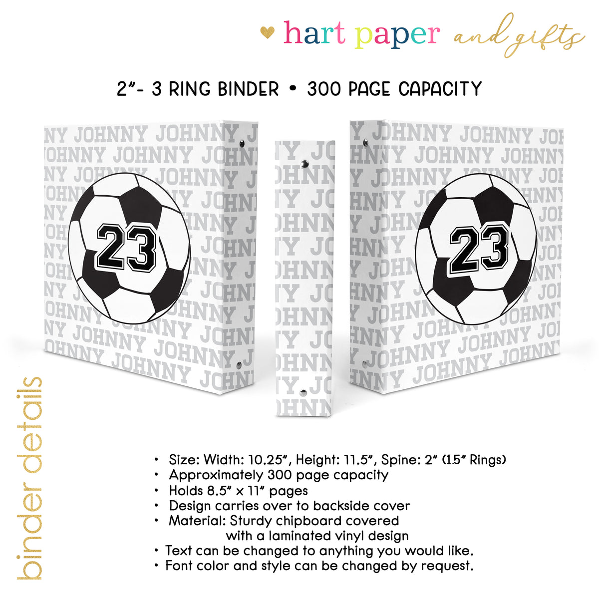 Soccer Sports Personalized Custom 2" 3 Ring Binder • School Office Supplies
