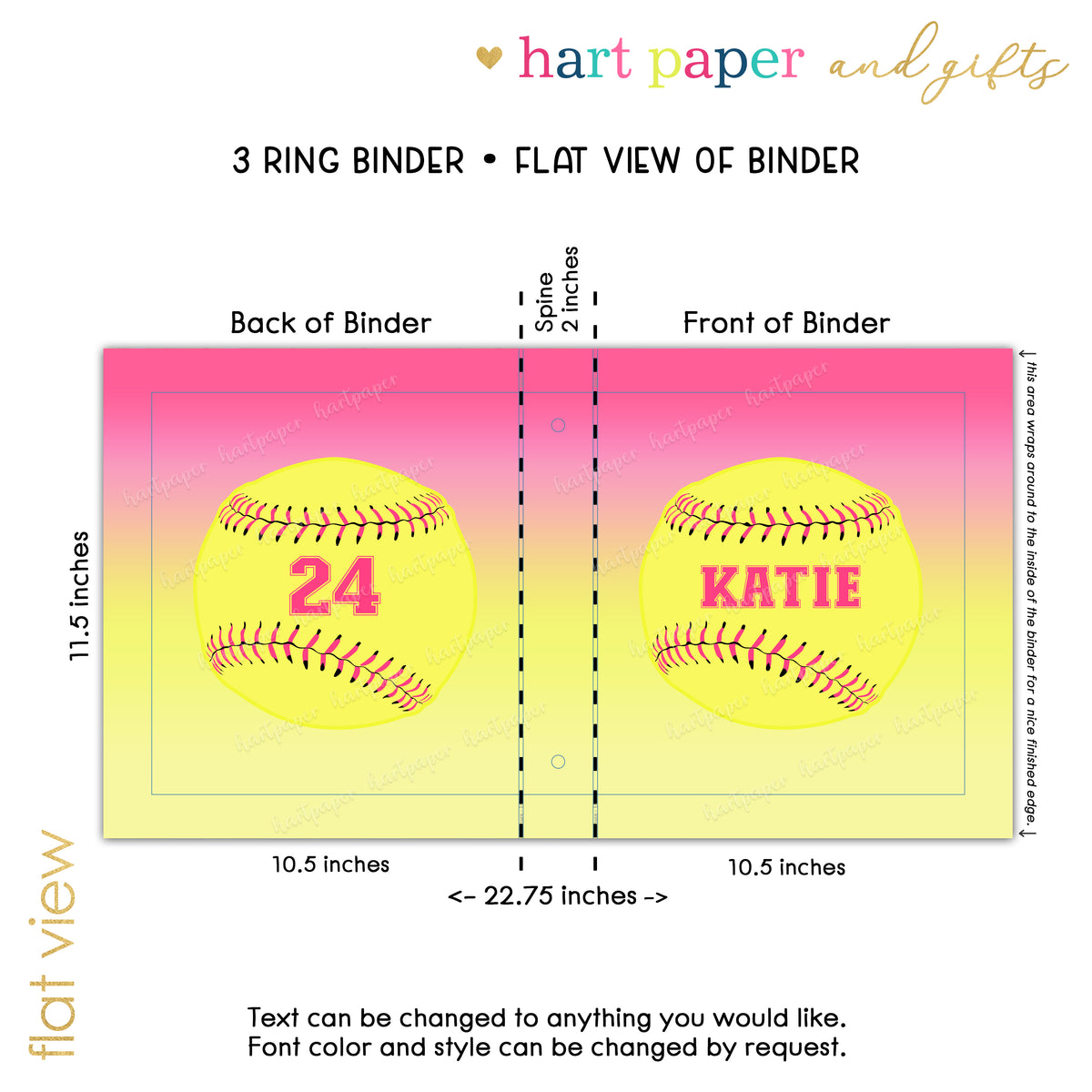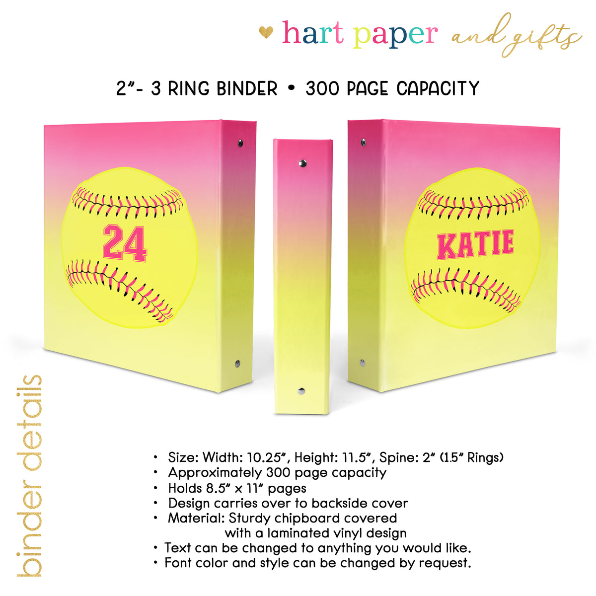 Softball Sports Personalized Custom 2" 3 Ring Binder • School Office Supplies
