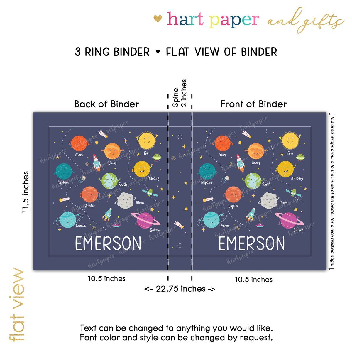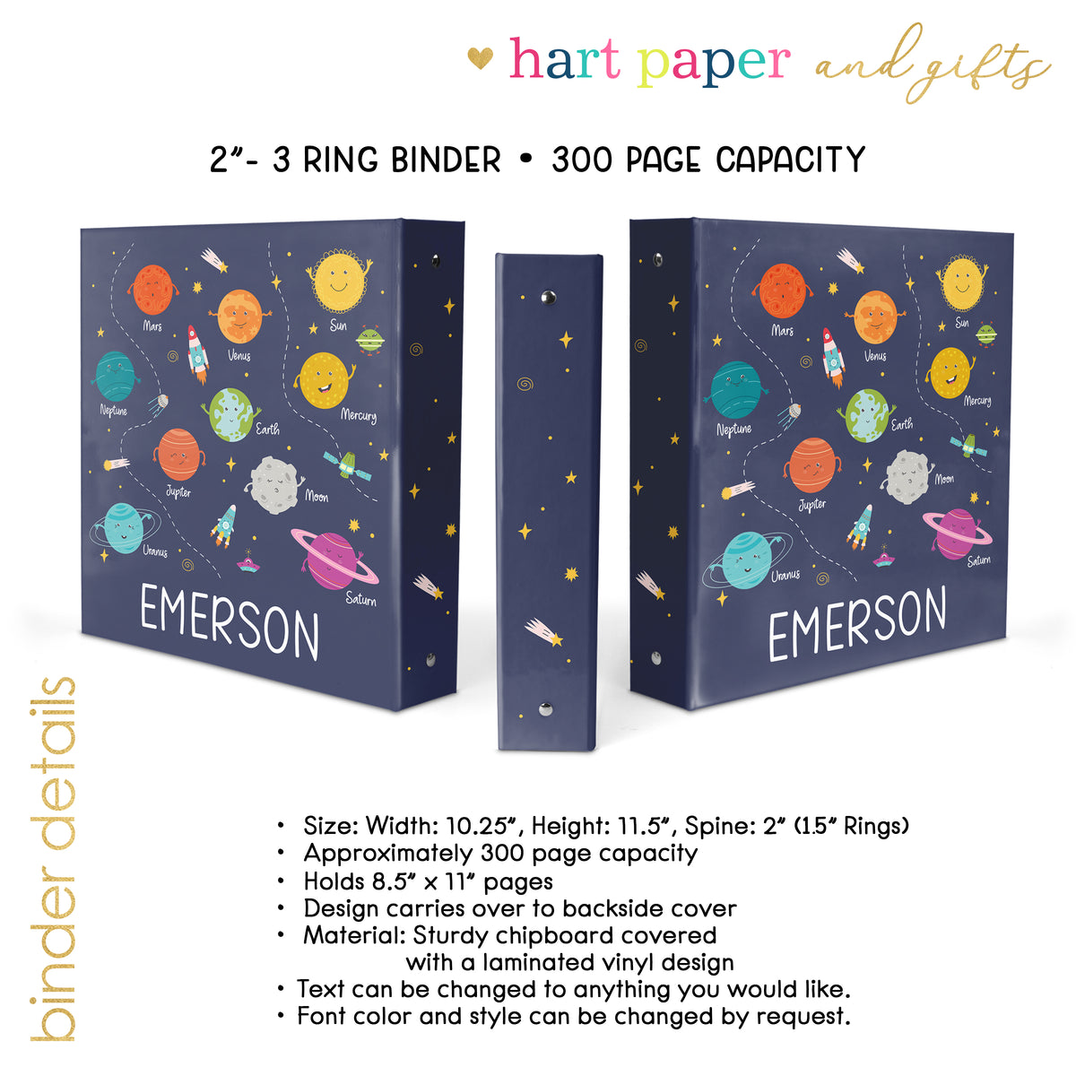 Solar System Planets Personalized Custom 2" 3 Ring Binder • School Office Supplies