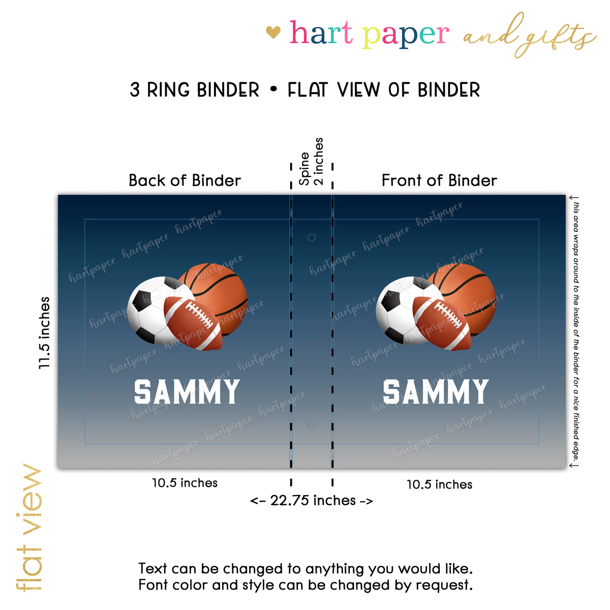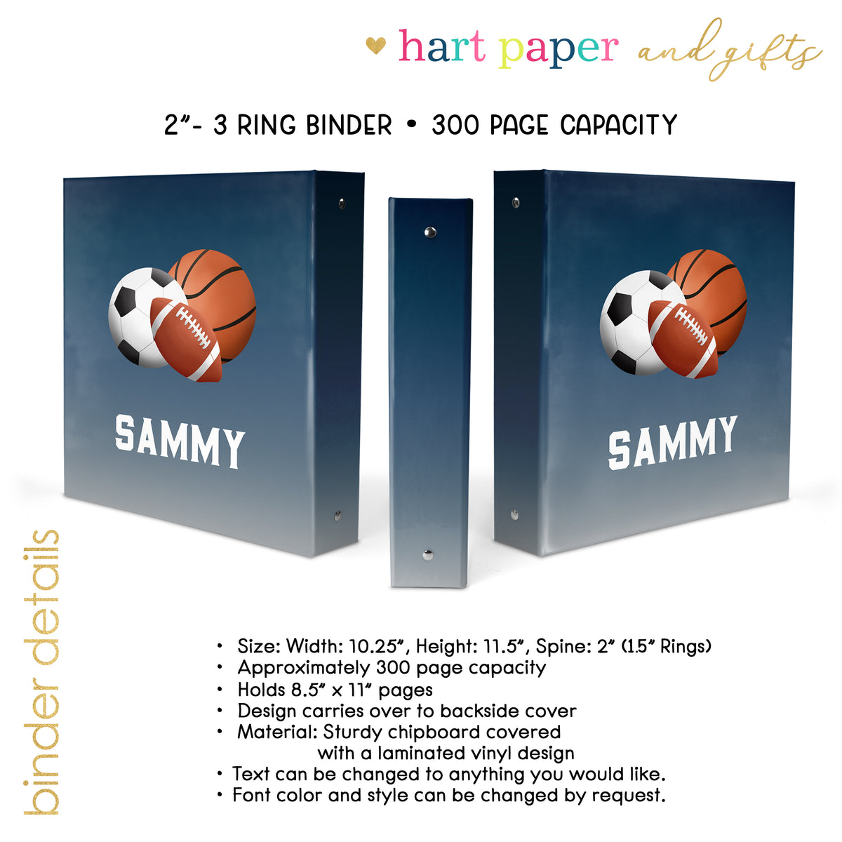 Sports Personalized Custom 2" 3 Ring Binder • School Office Supplies