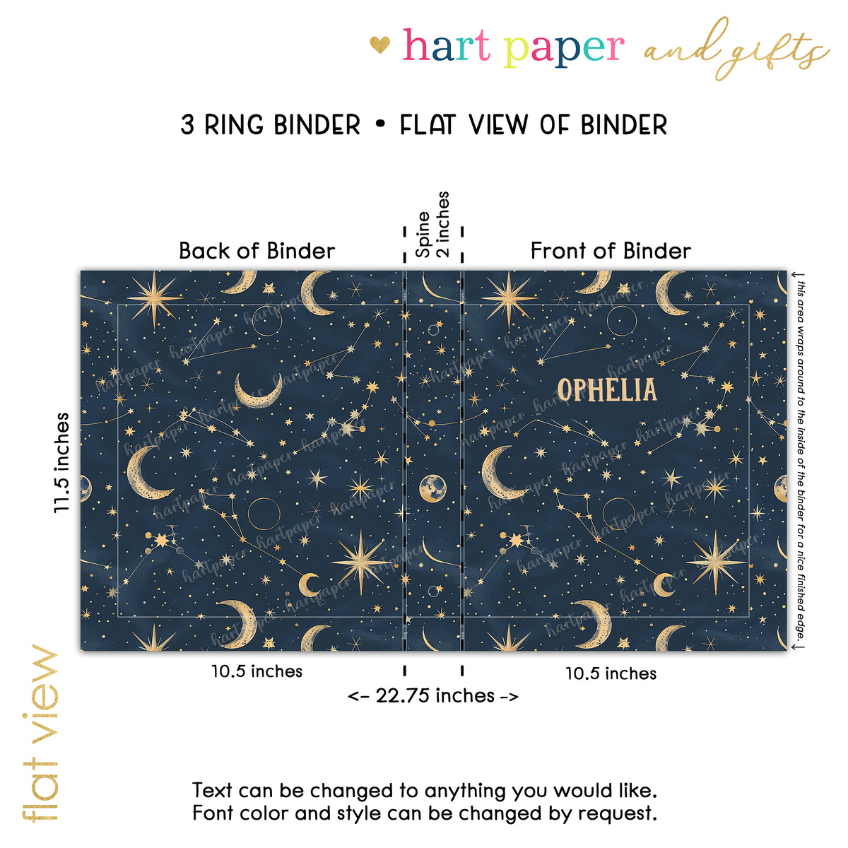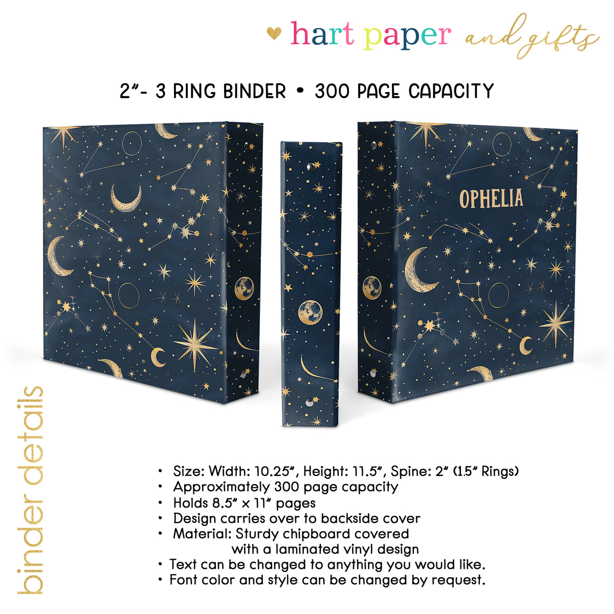 Stars Moons Solar System Personalized Custom 2" 3 Ring Binder • School Office Supplies