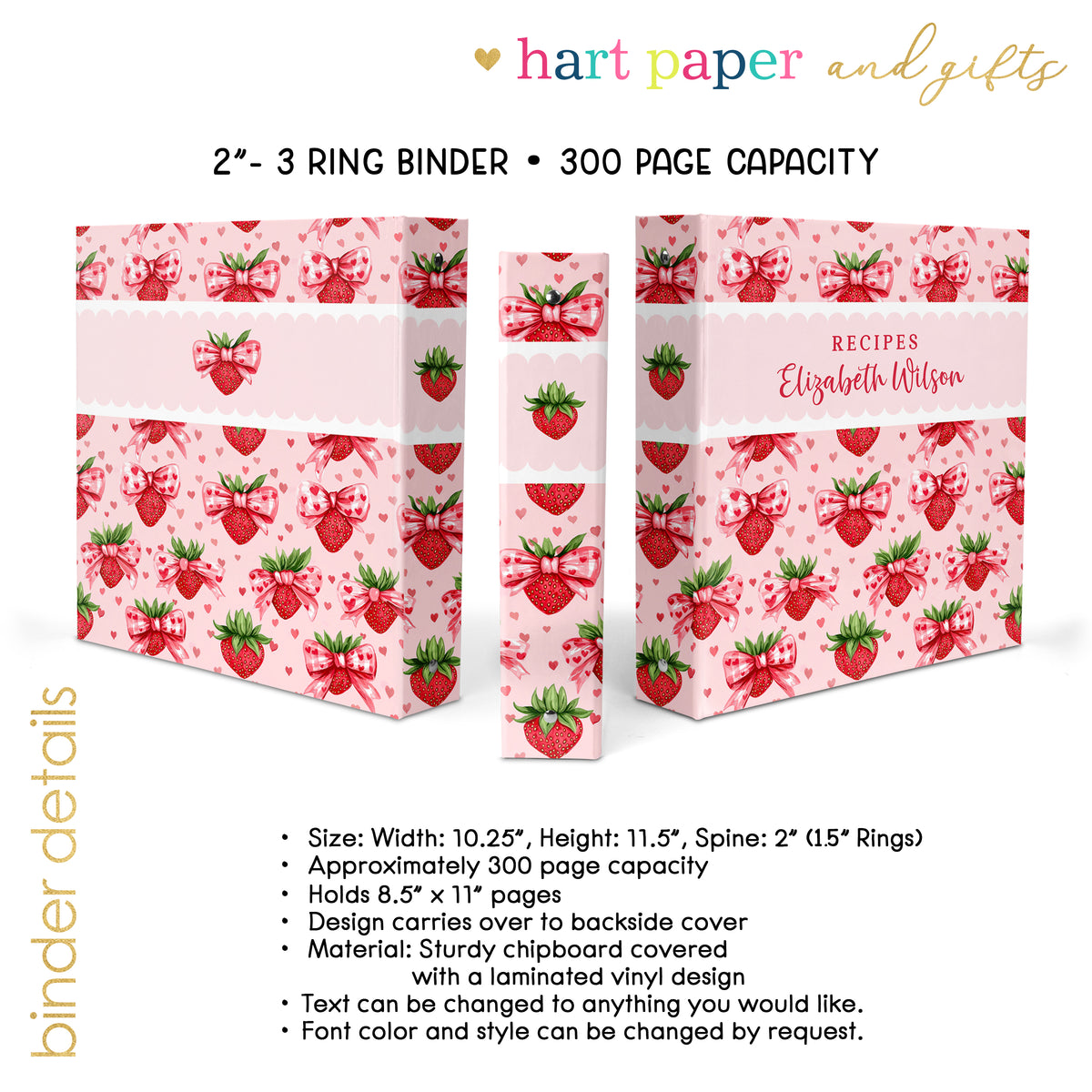 Strawberry Personalized Custom 2" 3 Ring Recipe Book Binder