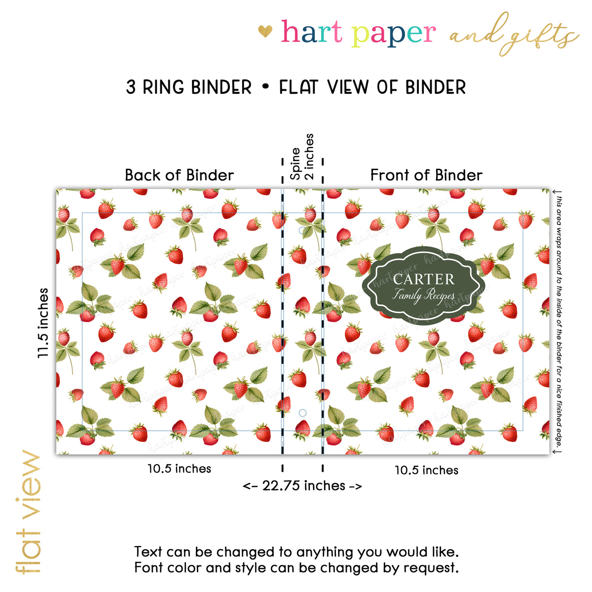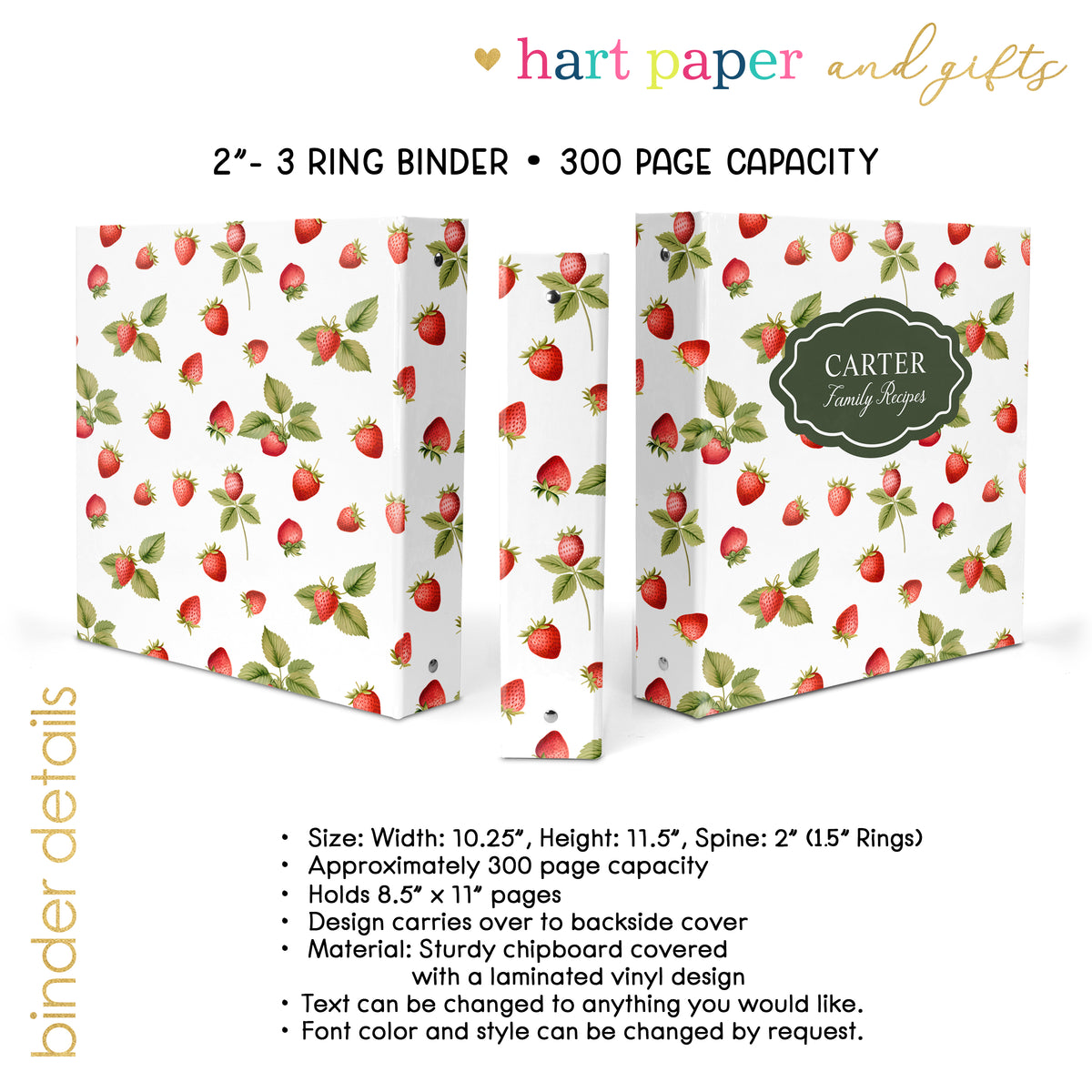Strawberry Personalized Custom 2" 3 Ring Recipe Book Binder