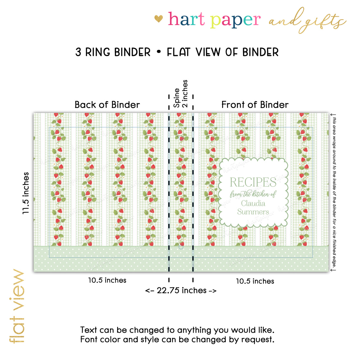 Strawberry Personalized Custom 2" 3 Ring Recipe Book Binder