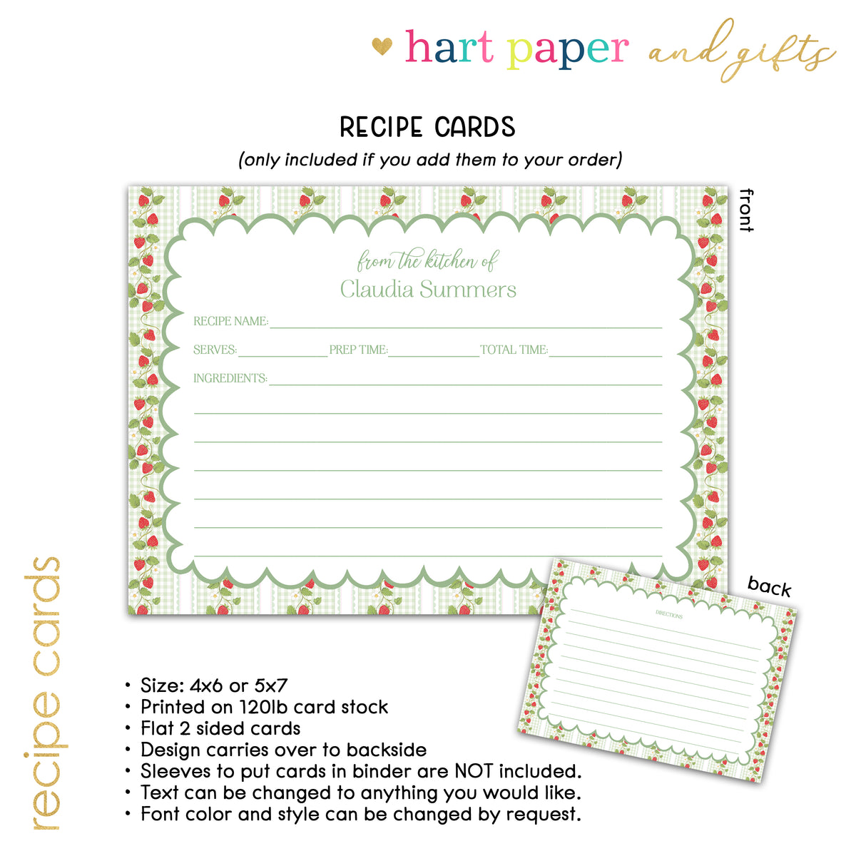 Organize your favorite recipes in style with our beautifully designed custom recipe binder and optional matching recipe cards. Perfect for storing family recipes, meal planning ideas, and holiday favorites, this set adds both charm and practicality to any kitchen.