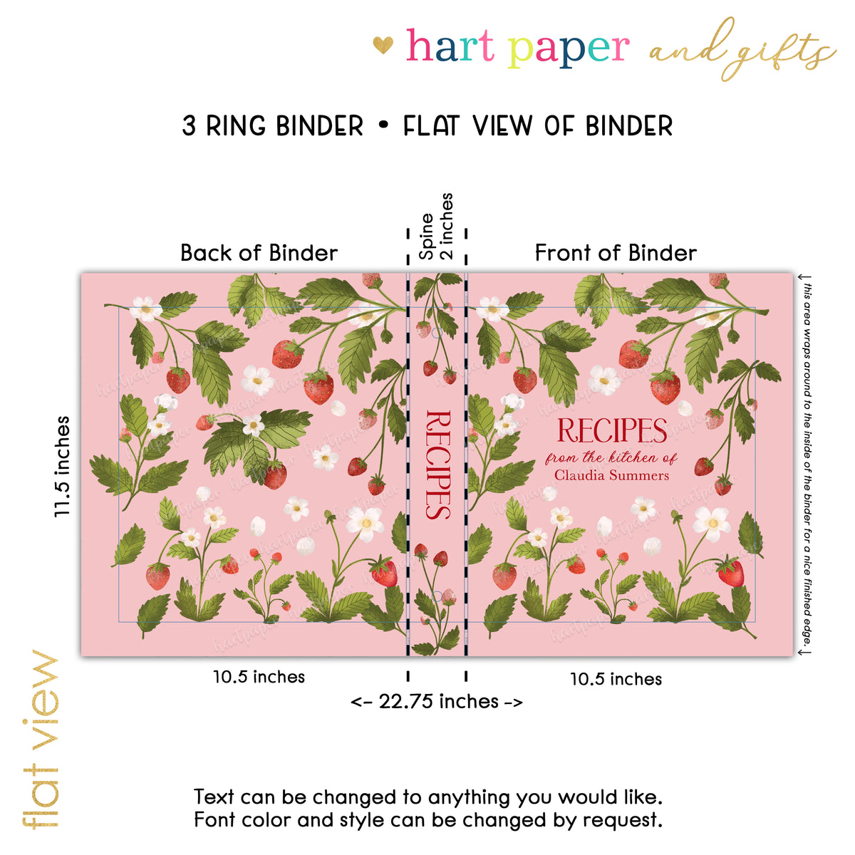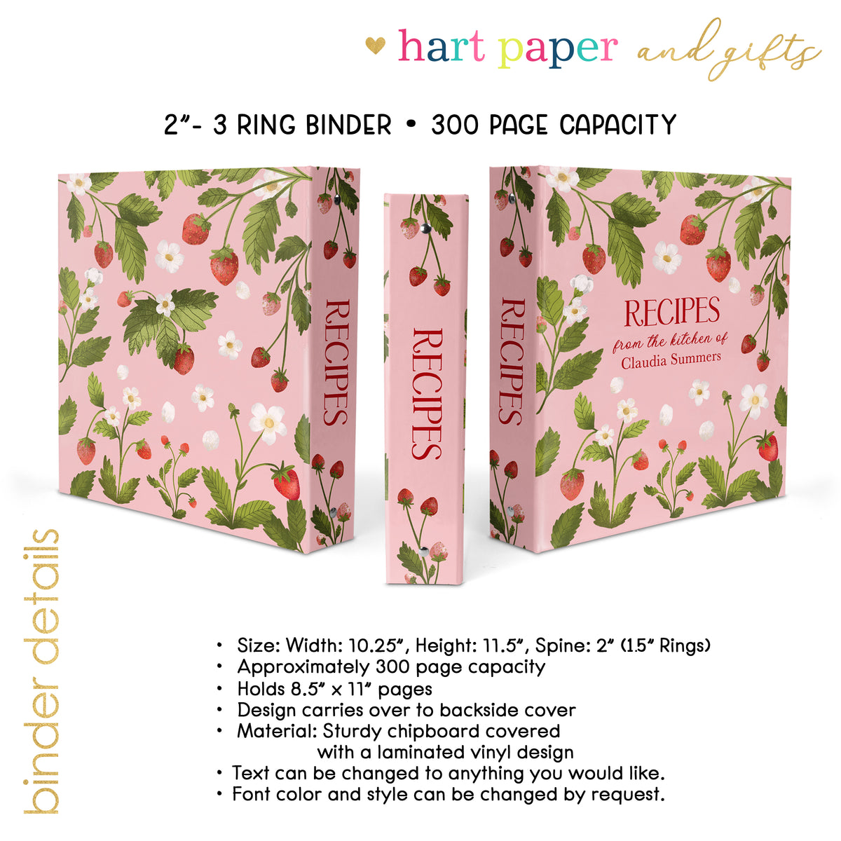 Strawberry Personalized Custom 2" 3 Ring Recipe Book Binder