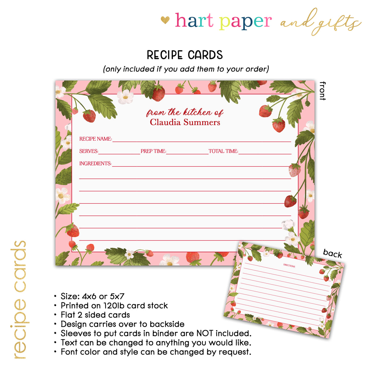 • Optional matching recipe cards for handwritten notes