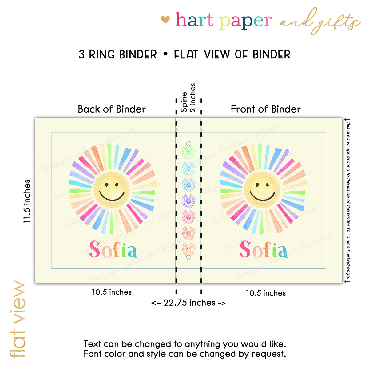 Sun Rainbow Personalized Custom 2" 3 Ring Binder • School Office Supplies