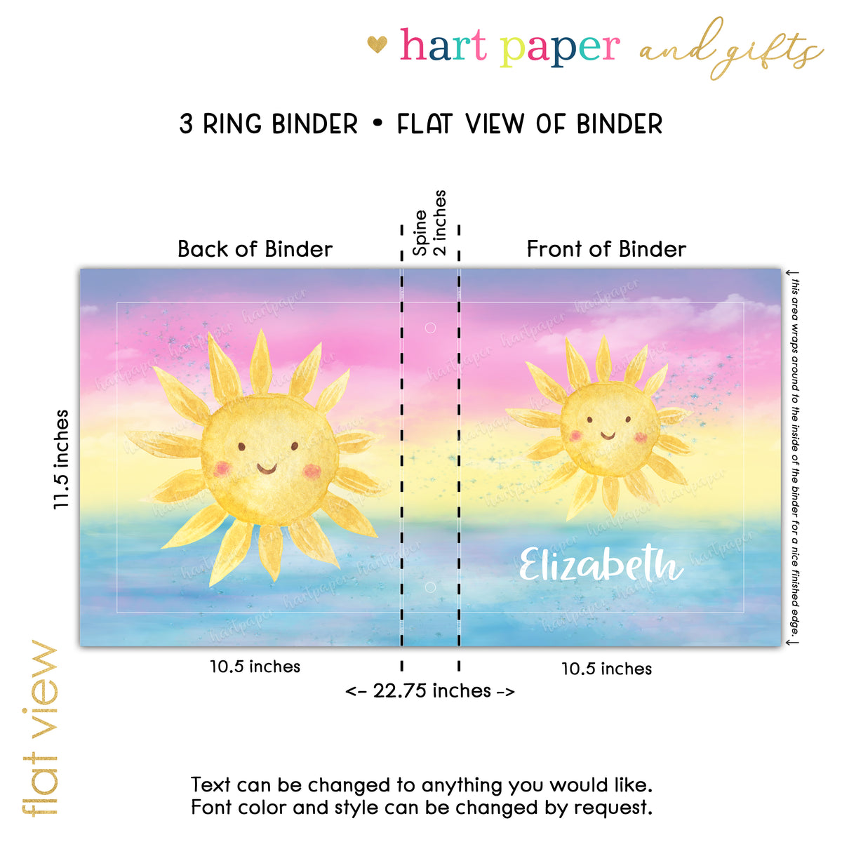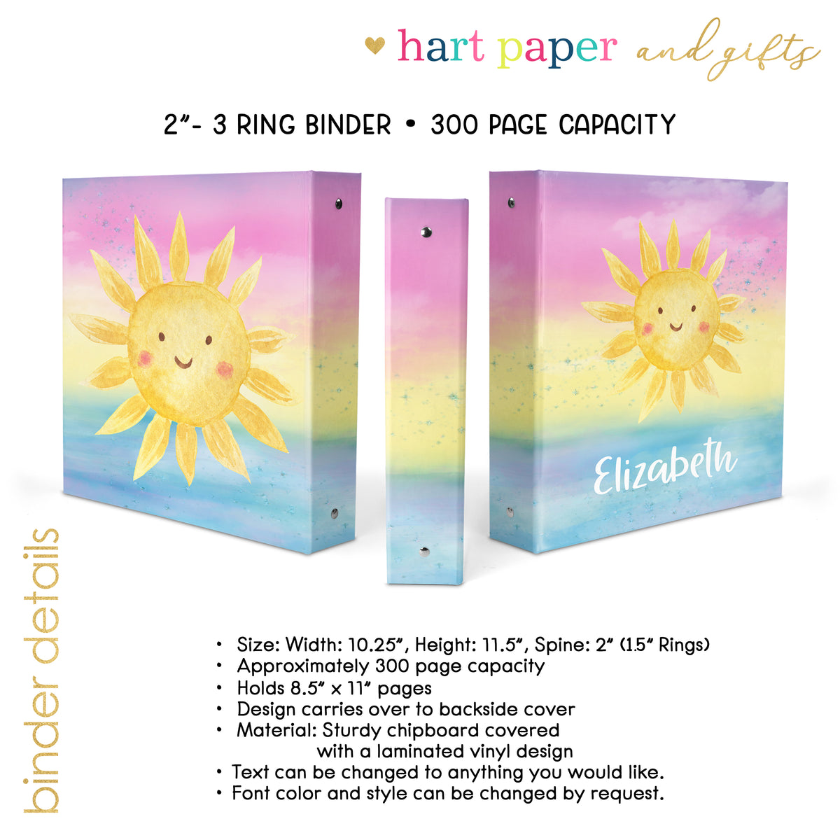 Sun Rainbow Personalized Custom 2" 3 Ring Binder • School Office Supplies
