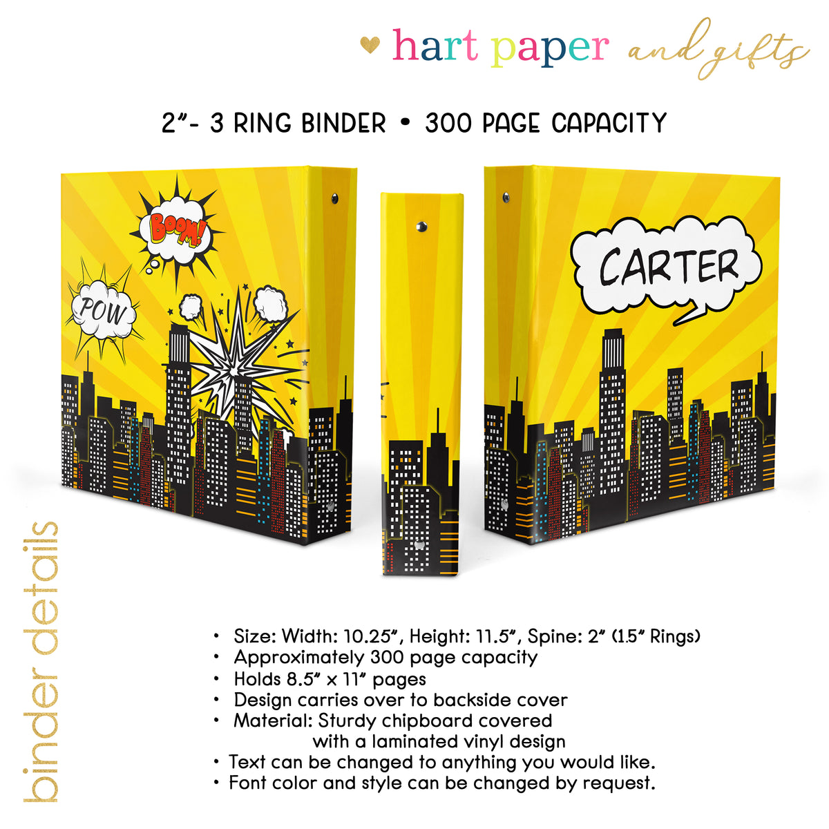 Superhero Personalized Custom 2" 3 Ring Binder • School Office Supplies