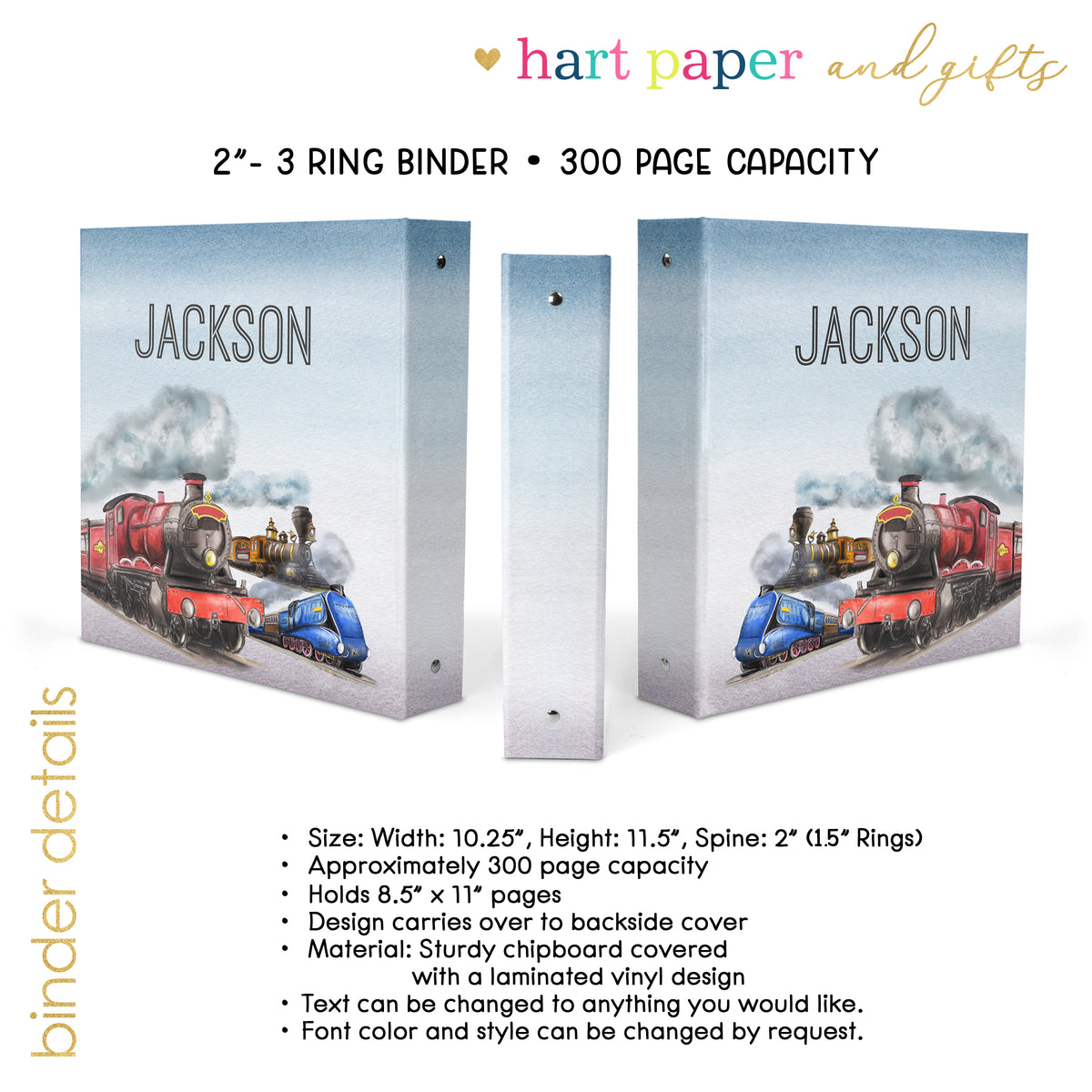 Train Personalized Custom 2" 3 Ring Binder • School Office Supplies