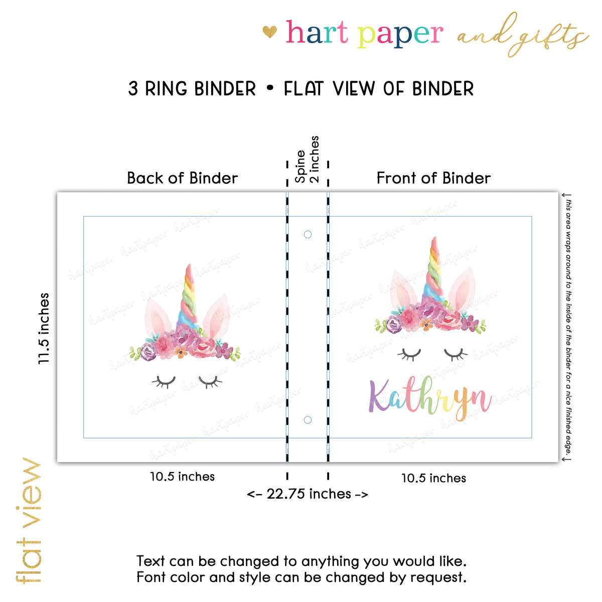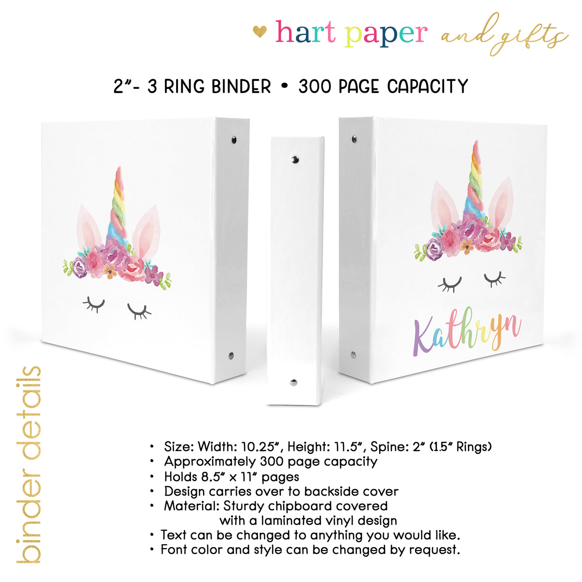 Unicorn Horn Rainbow Personalized Custom 2" 3 Ring Binder • School Office Supplies
