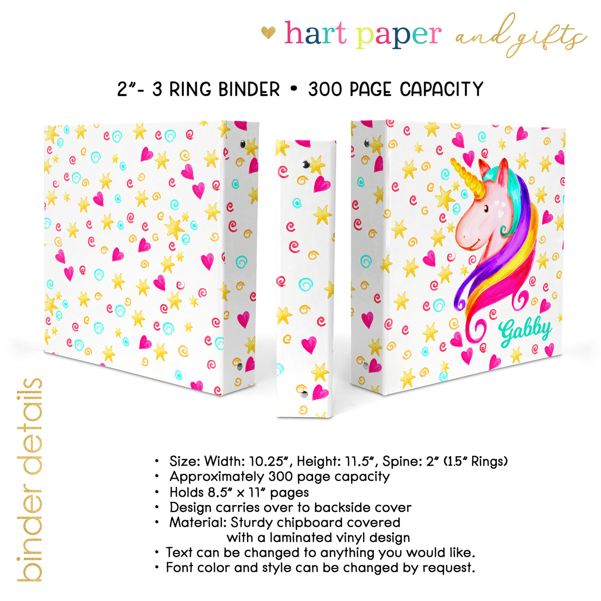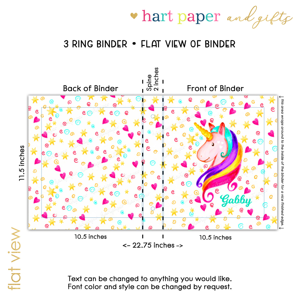 Unicorn Rainbow Personalized Custom 2" 3 Ring Binder • School Office Supplies