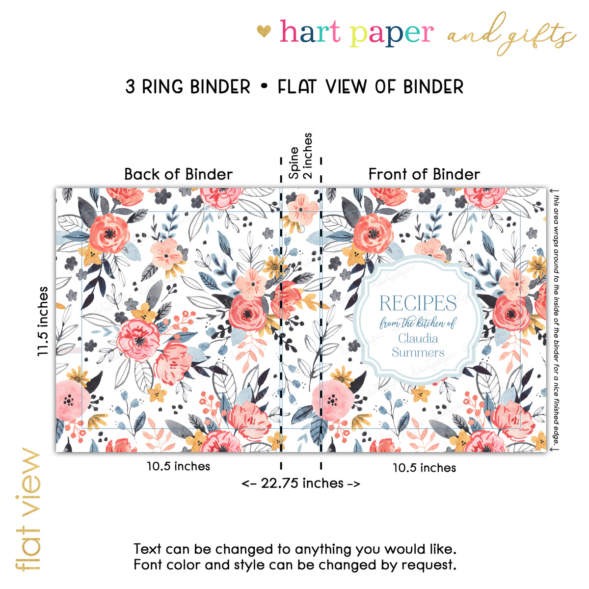 Vintage Flowers Personalized Custom 2" 3 Ring Recipe Book Binder