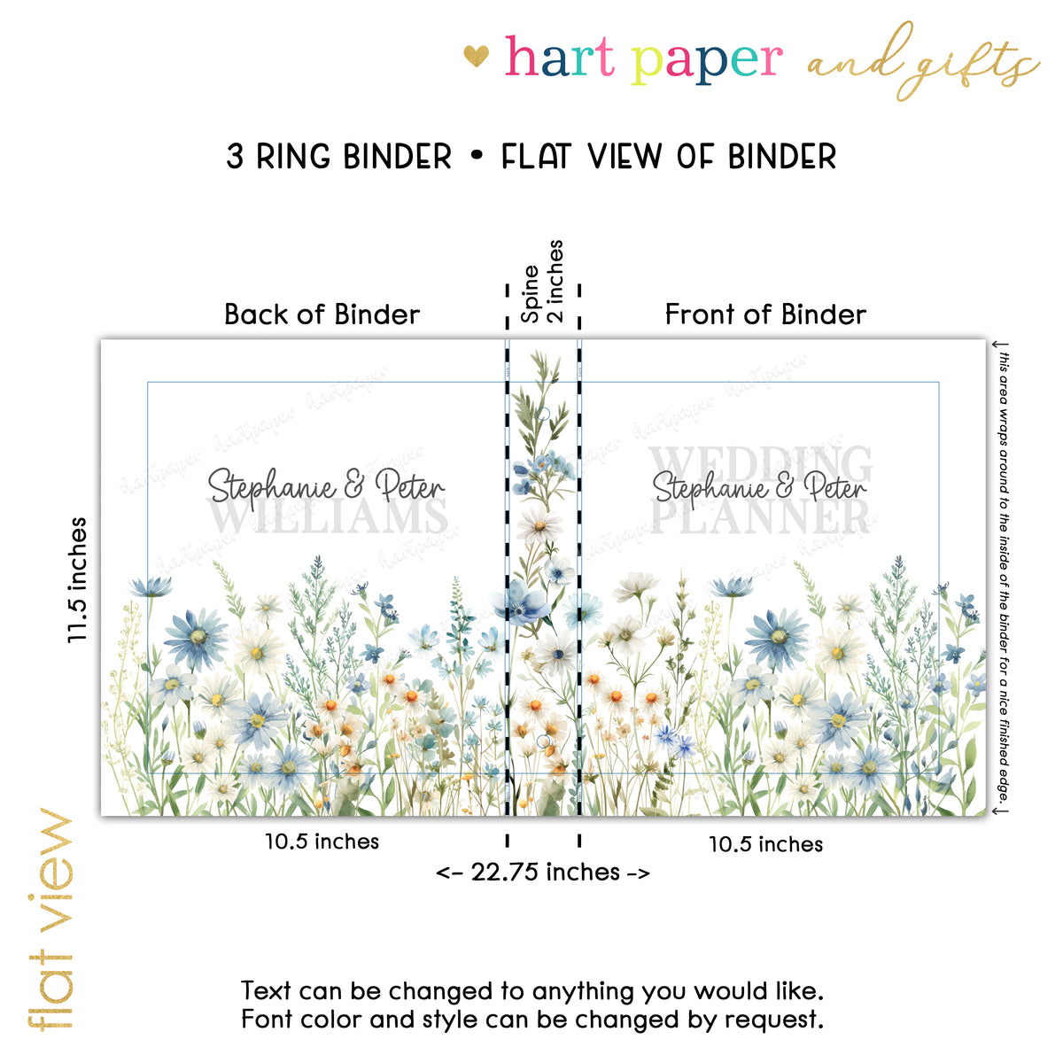 Wildflower Wedding Bridal Personalized Custom 2" 3 Ring Binder • School Office Supplies