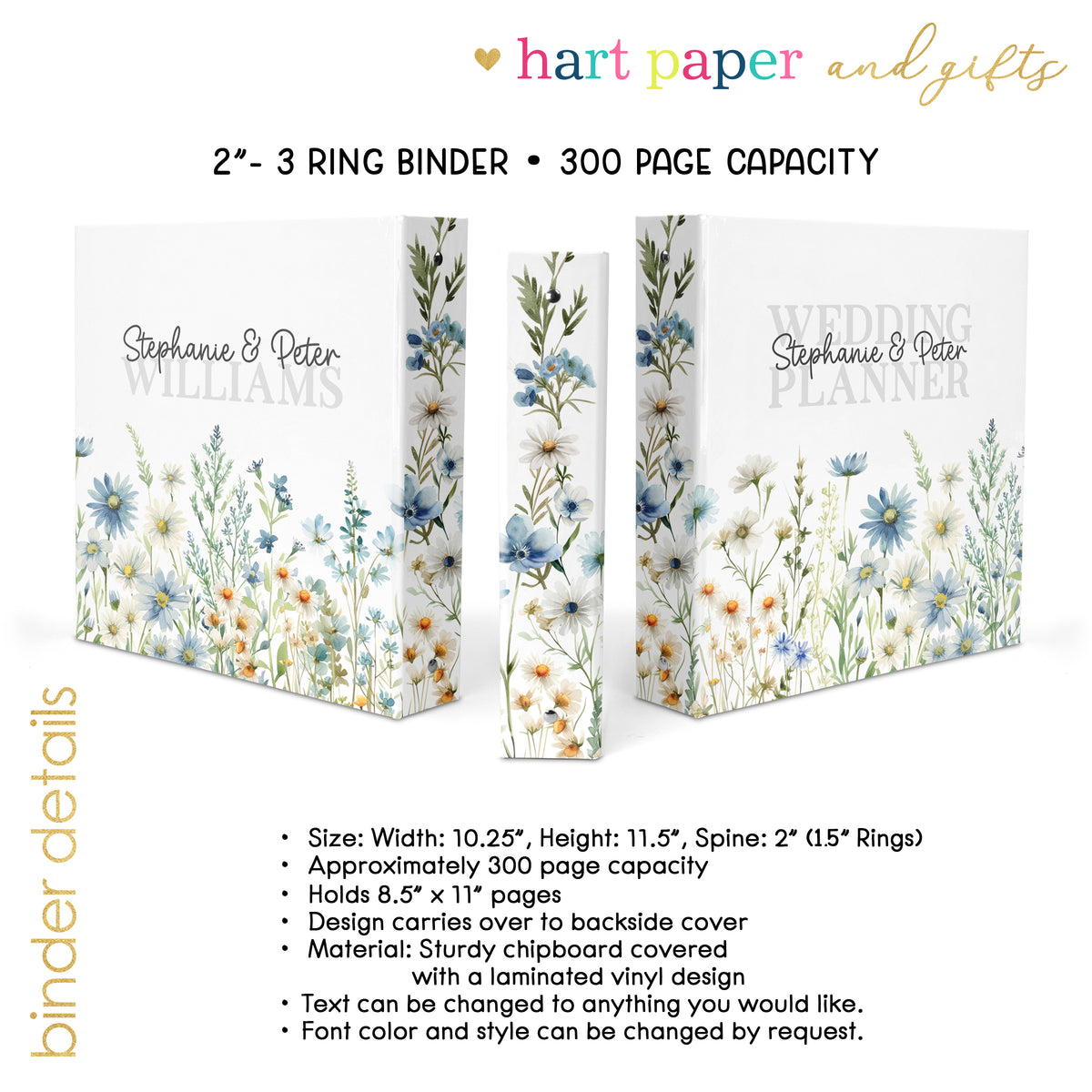 Each binder is made to order and personalized with names, wedding dates, or custom text—making it a truly unique keepsake for one of life’s most exciting journeys. Choose from romantic, classic, or modern designs to match your wedding theme or personal style.