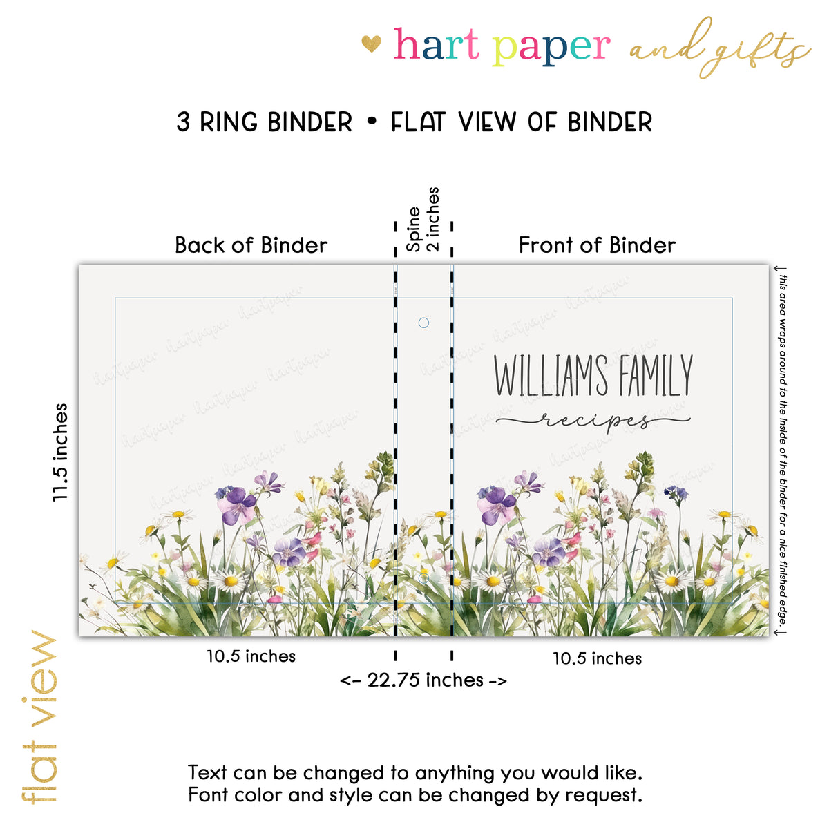Wildflowers Personalized Custom 2" 3 Ring Recipe Book Binder