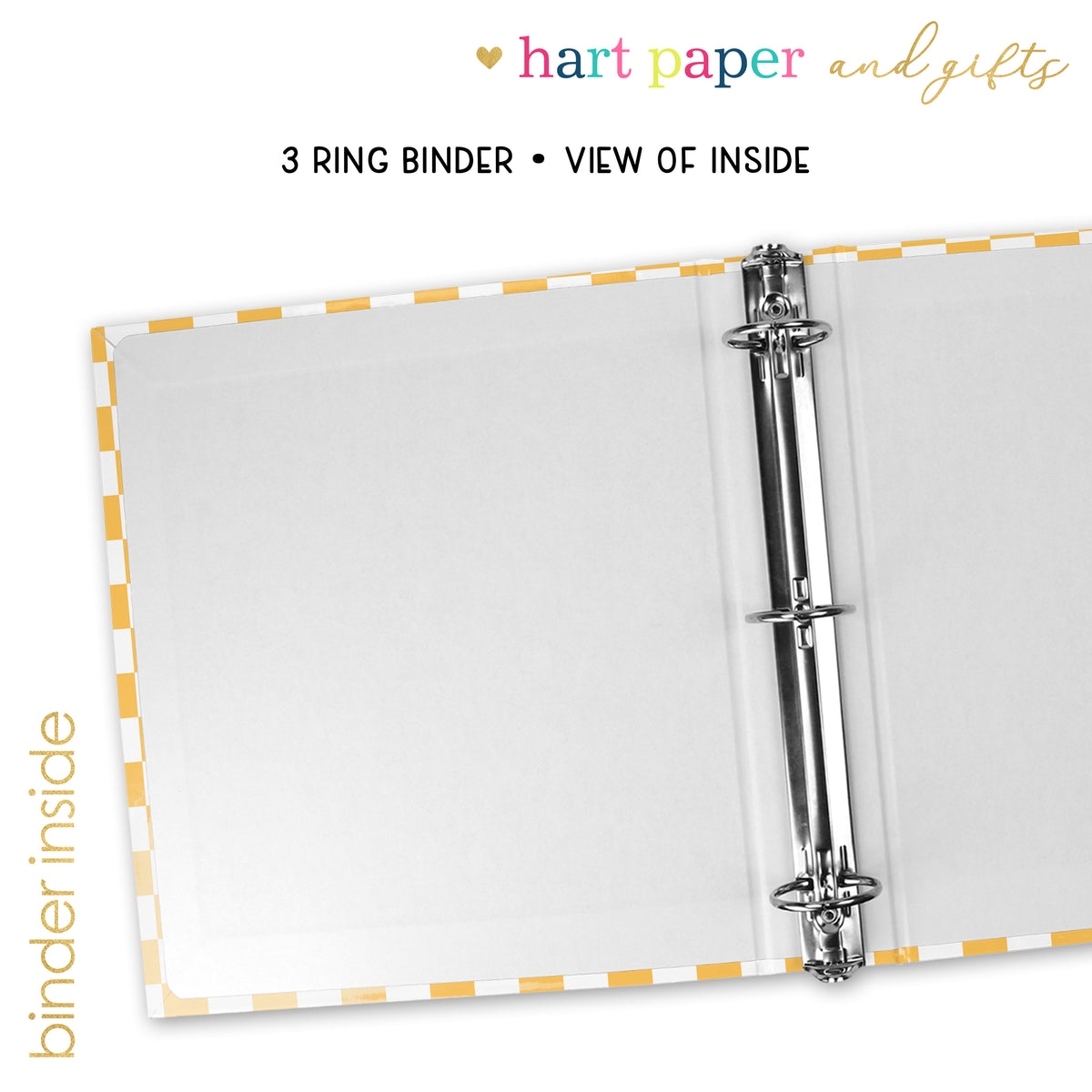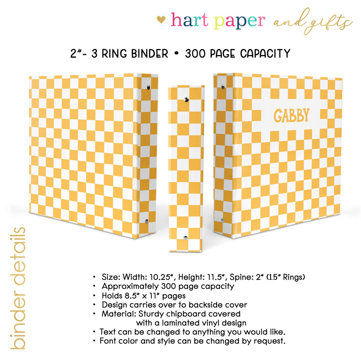 Yellow White Checks Personalized Custom 2" 3 Ring Binder • School Office Supplies