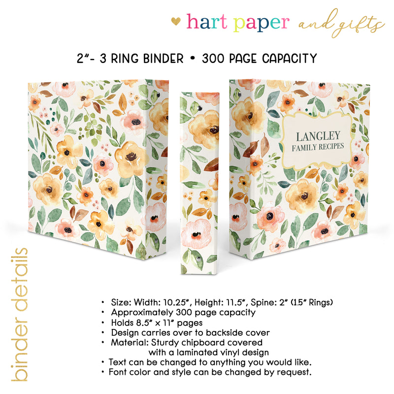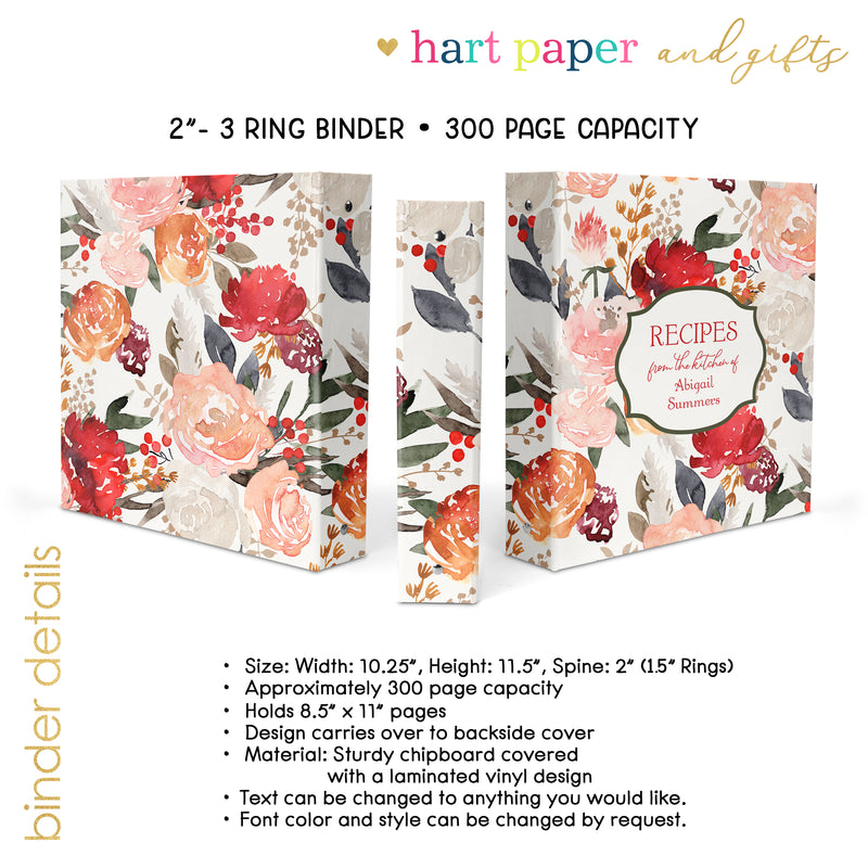 Autumn Fall Flowers Personalized Custom 2" 3 Ring Recipe Book Binder