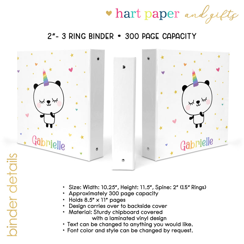 Panda Rainbow Personalized Custom 2" 3 Ring Binder • School Office Supplies