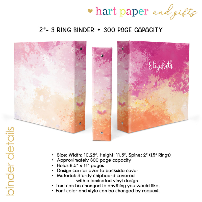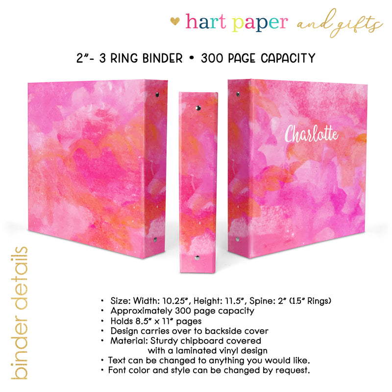 Pink Orange Abstract Personalized Custom 2" 3 Ring Binder • School Office Supplies