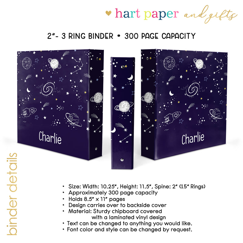 Solar System Planets Personalized Custom 2" 3 Ring Binder • School Office Supplies