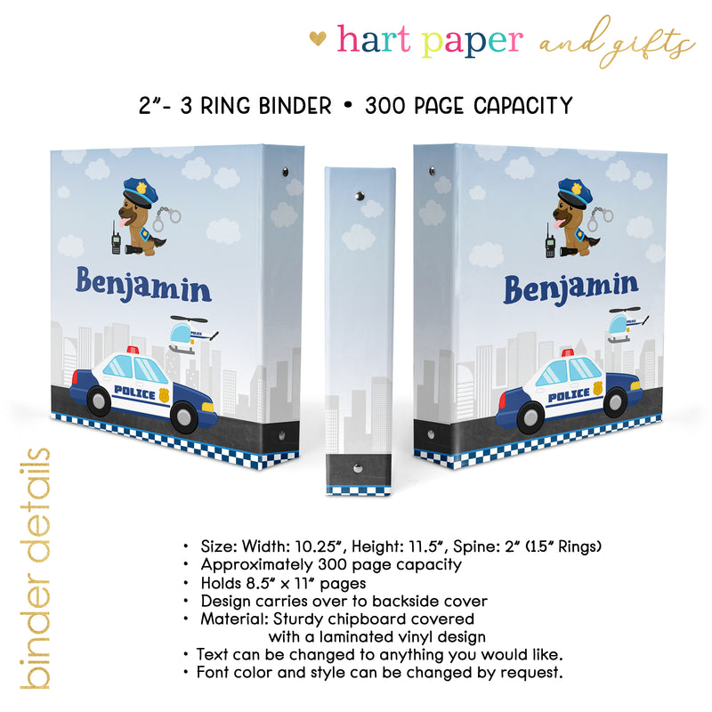 Police Personalized Custom 2" 3 Ring Binder • School Office Supplies