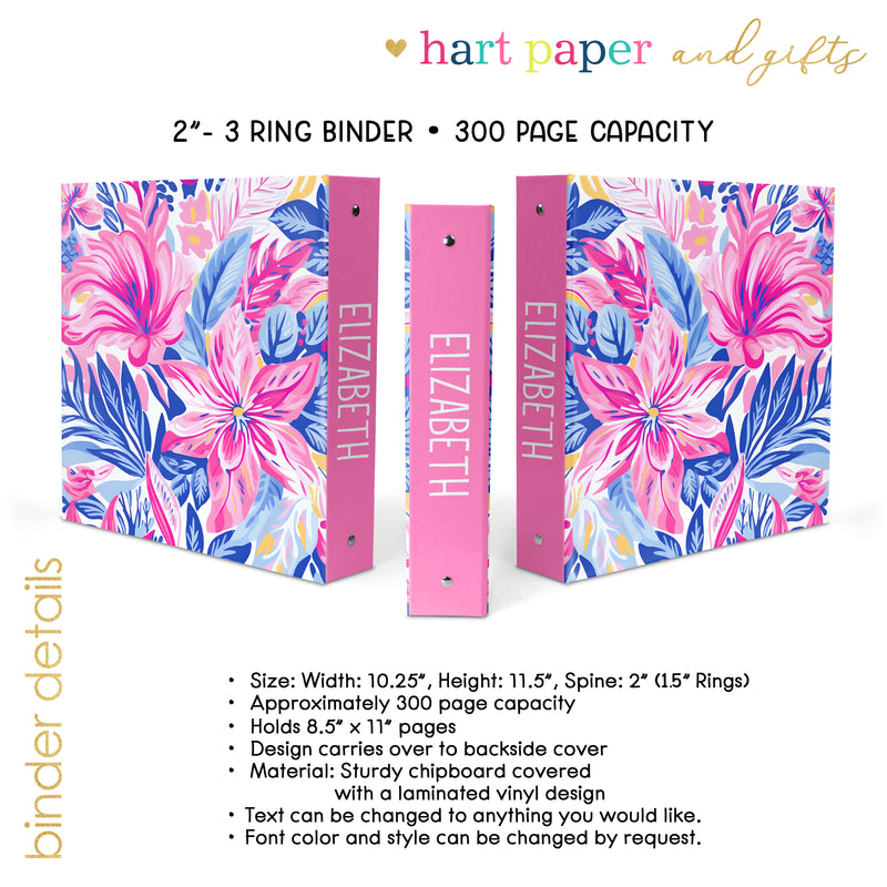 Preppy Flowers Personalized Custom 2" 3 Ring Binder • School Office Supplies