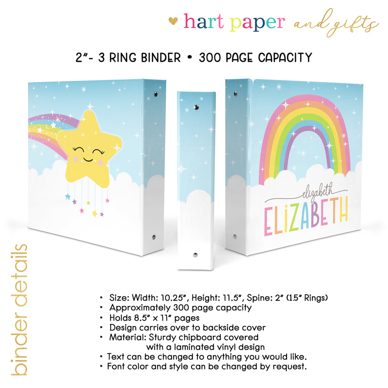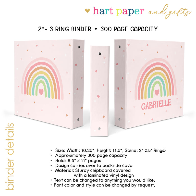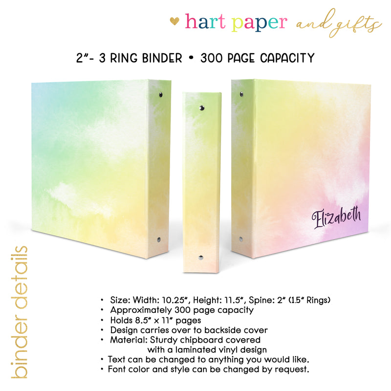 Rainbow Personalized Custom 2" 3 Ring Binder • School Office Supplies