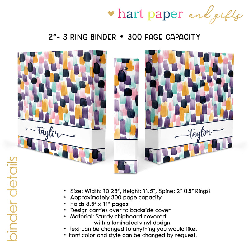 Our custom 3-ring binders are perfect for organizing schoolwork, home office papers, family recipes, keepsakes, and more. Each binder is personalized with a name or monogram and comes in a variety of fun and stylish designs for boys, girls, teens, and adults. Great for back-to-school supplies, teacher gifts, or holiday presents. Pair with our matching folders, clipboards, and notebooks for a complete personalized stationery set.