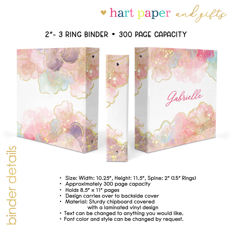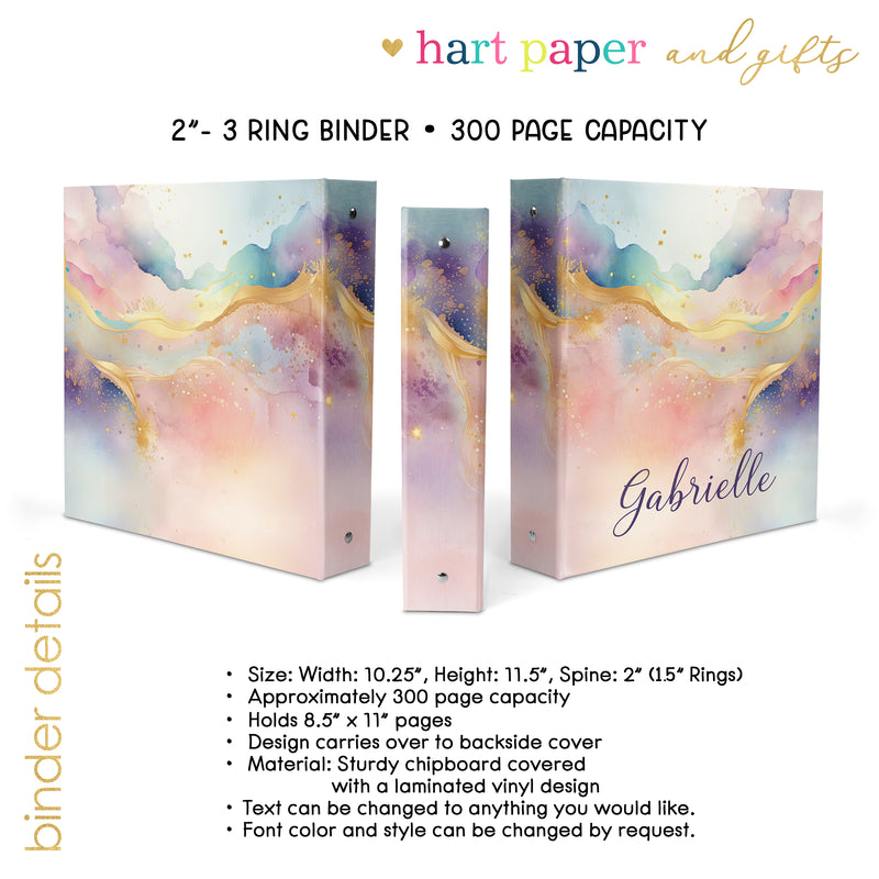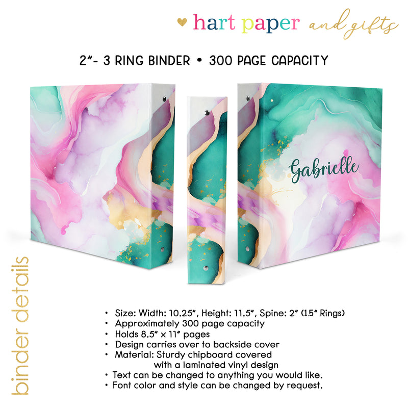 Rainbow Ink Marble Personalized Custom 2" 3 Ring Binder • School Office Supplies