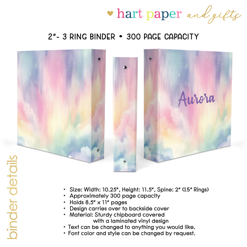 Pastel Rainbow Galaxy Stars Personalized Custom 2" 3 Ring Binder • School Office Supplies