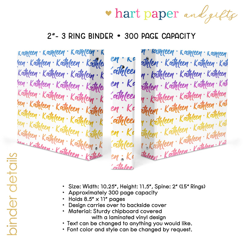 Rainbow Repeat Name Personalized Custom 2" 3 Ring Binder • School Office Supplies