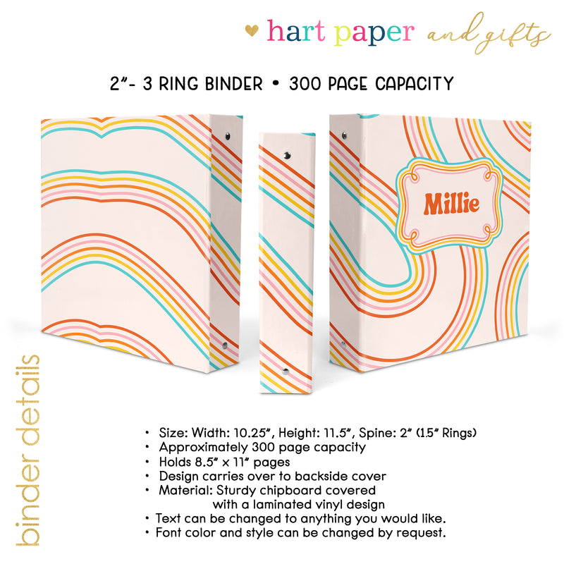 Retro Rainbow Personalized Custom 2" 3 Ring Binder • School Office Supplies