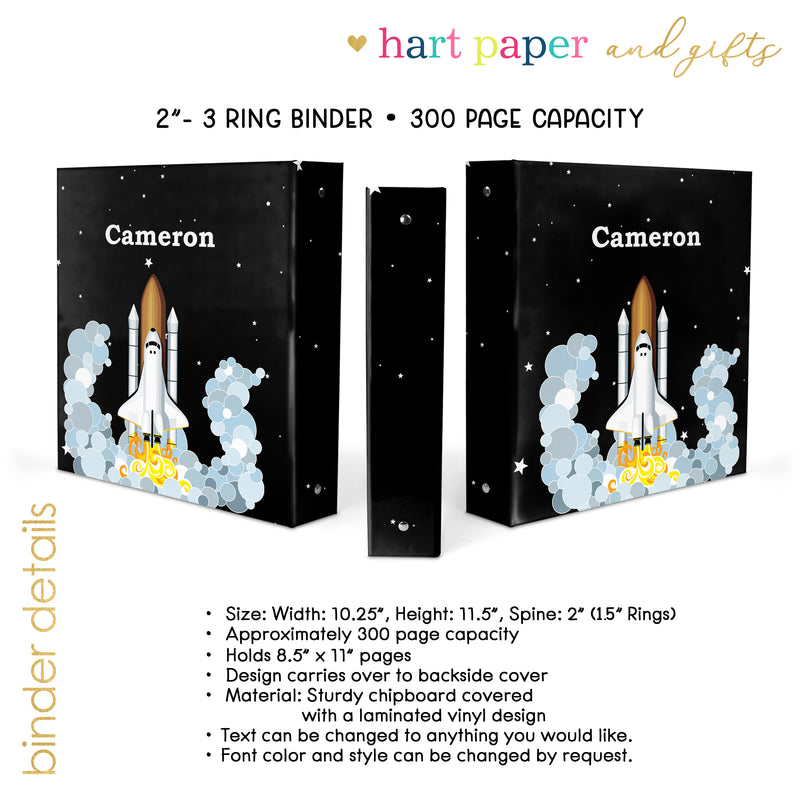 Rocket Space Shuttle Personalized Custom 2" 3 Ring Binder • School Office Supplies
