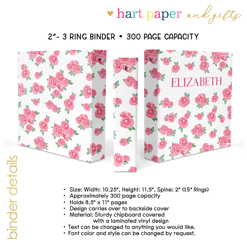 Pink Roses Personalized Custom 2" 3 Ring Binder • School Office Supplies